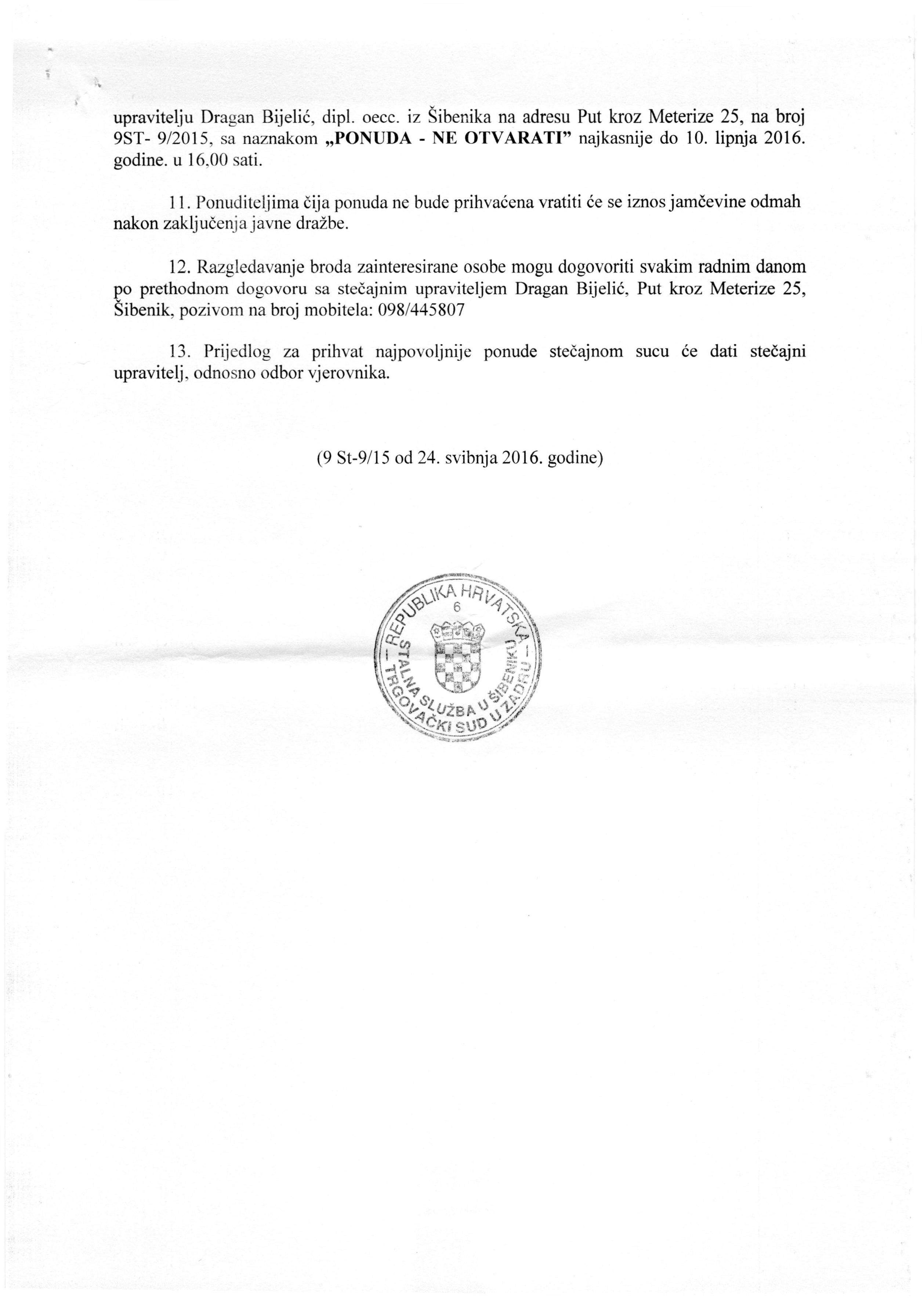 Stečajni dužnikAdria d.d. - Gaženička cesta 32, ZadarStečajni upraviteljDragan Bijelić - Put kroz Meterize 25 , Šibenik