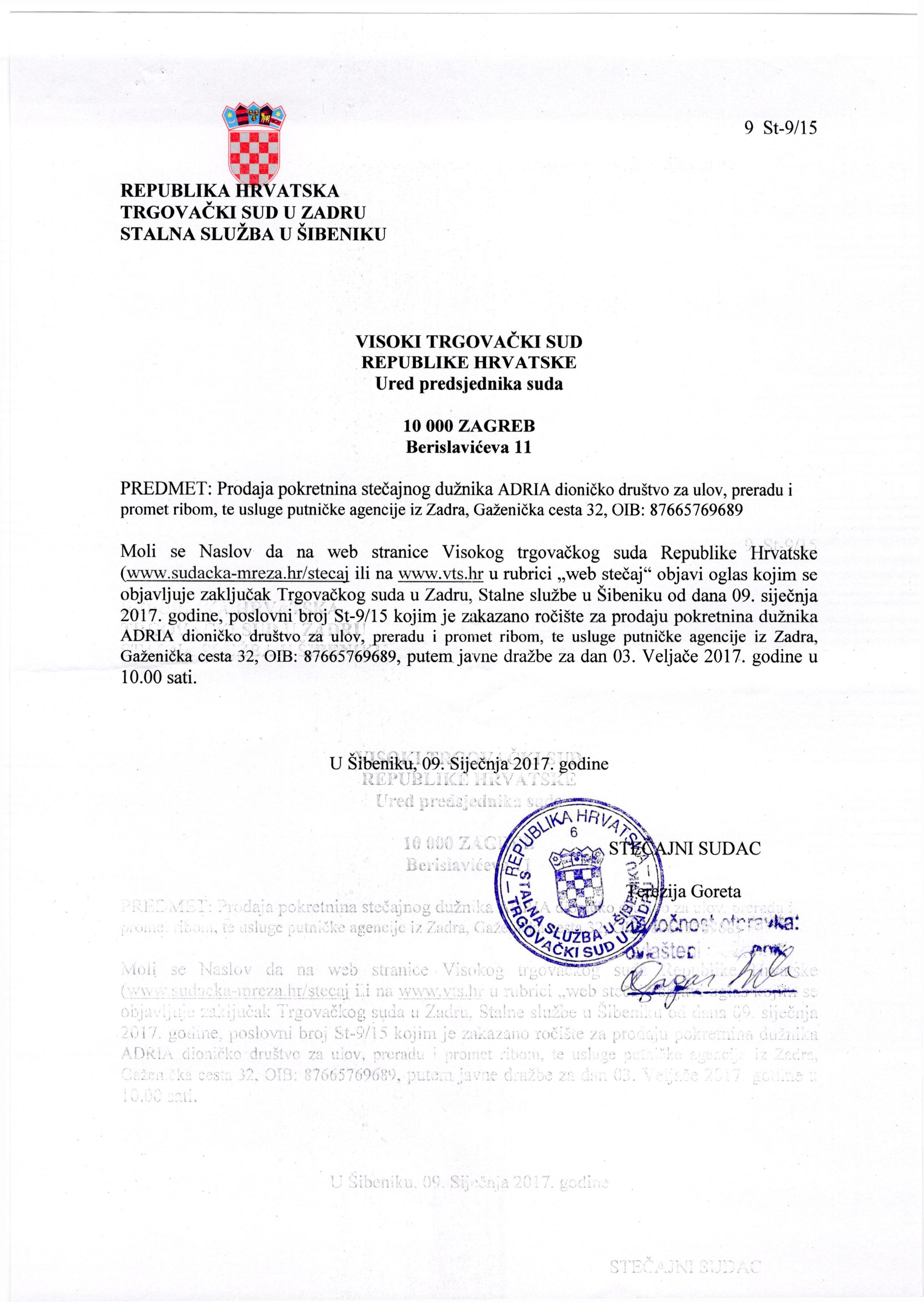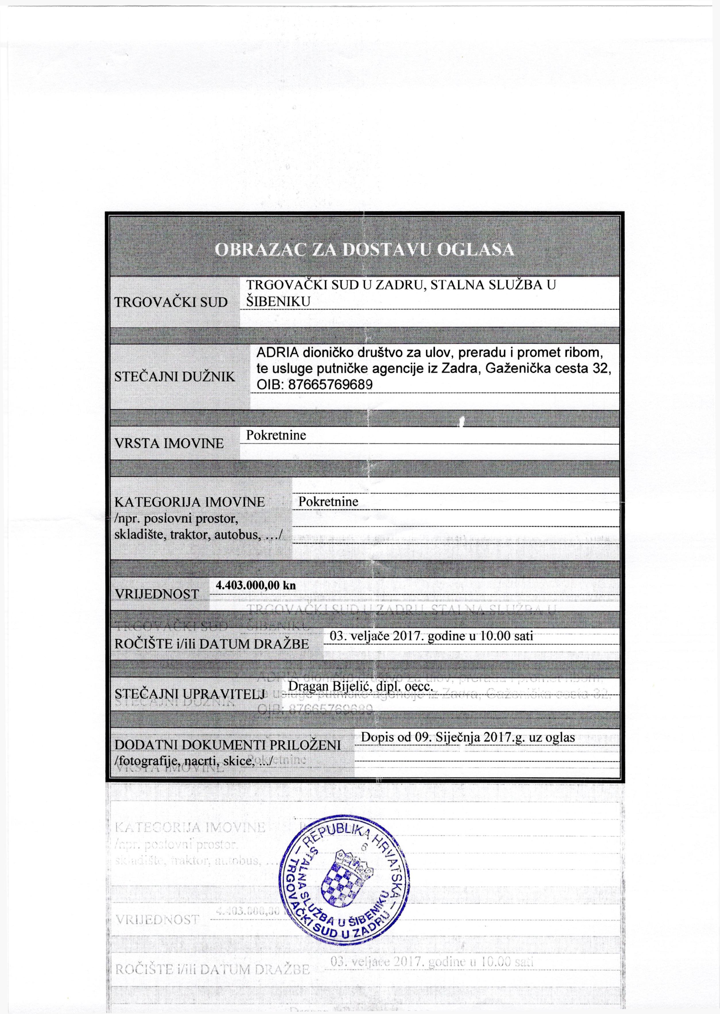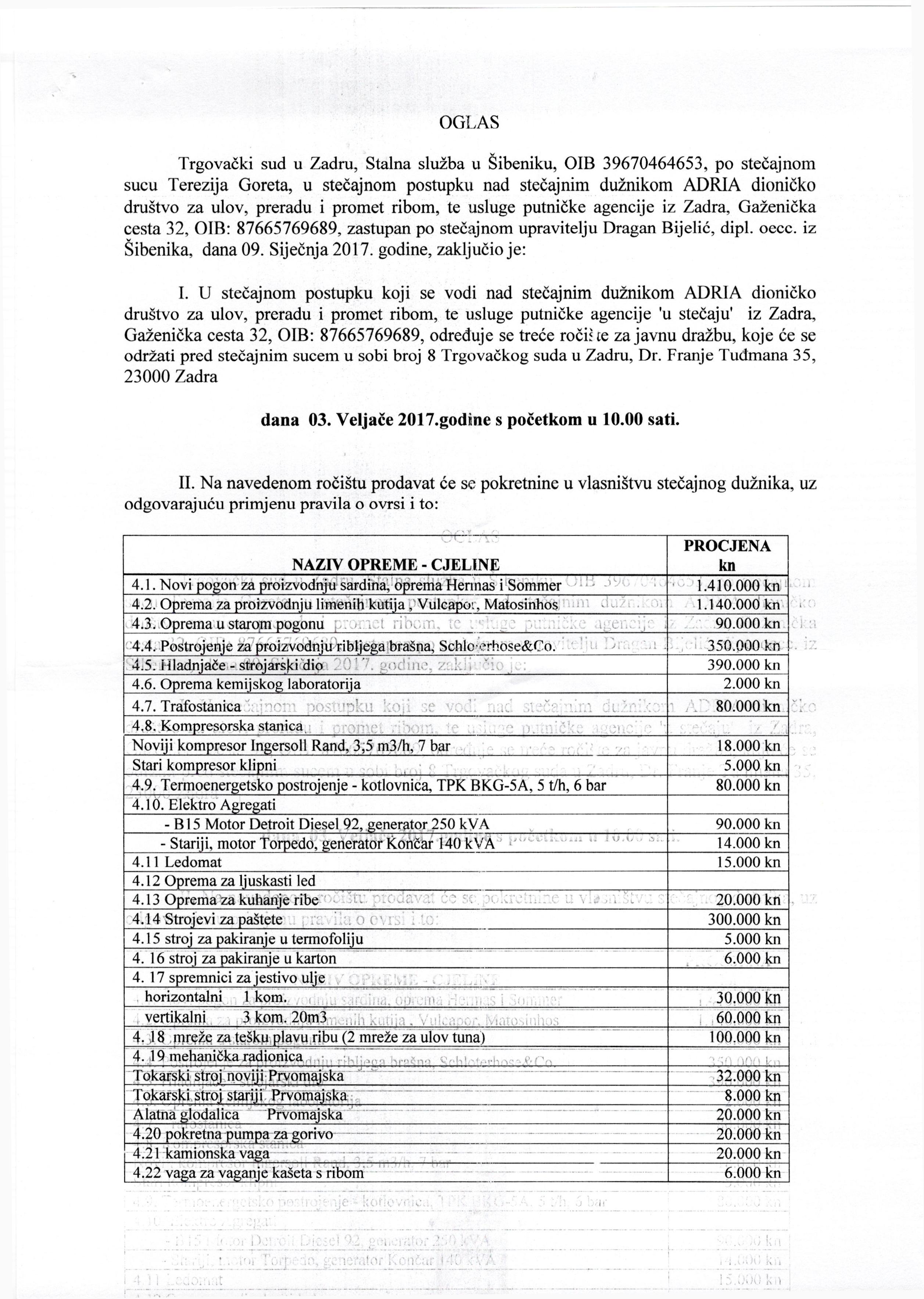 2803.02.2017Adria d.d., ZadarDragan Bijelić Prodaja imovine stečajnog dužnikaopširnije