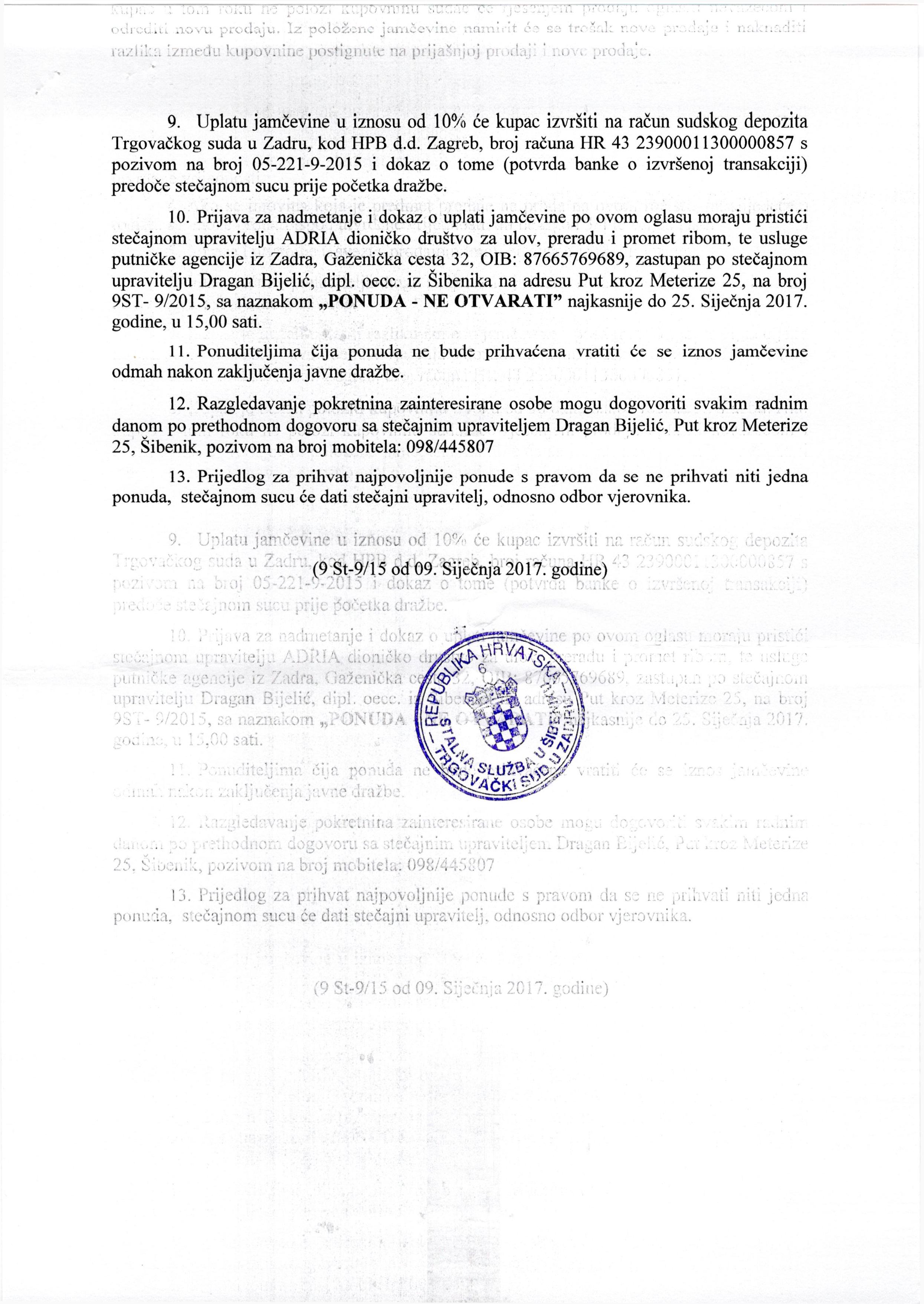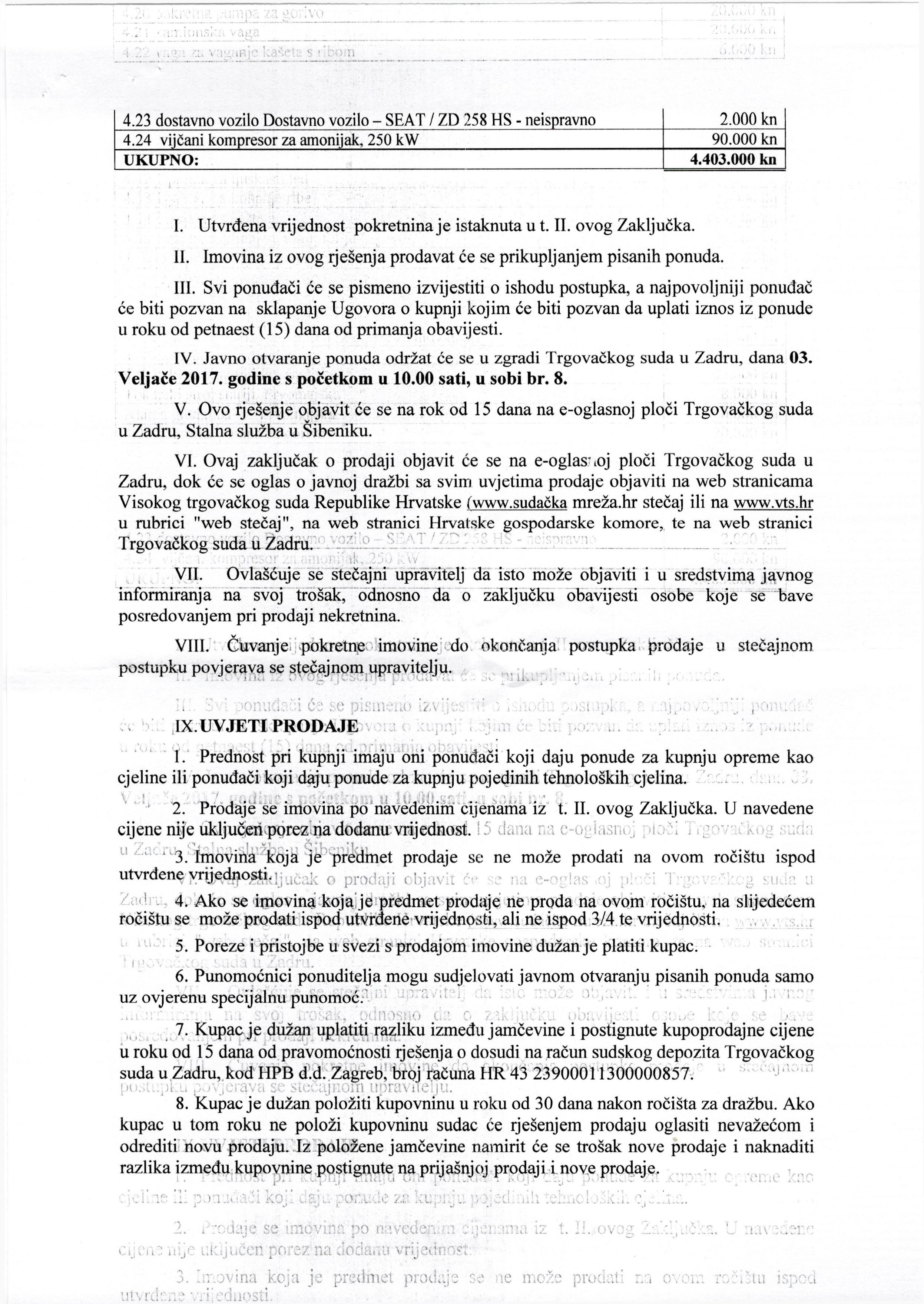 Stecajni upravitelj je poslao tekst oglasa u JPG formatu, stoga nije bilo moguce unijeti kao tekst.